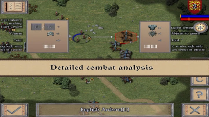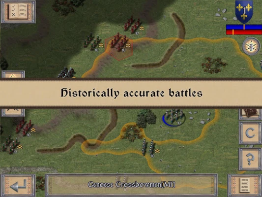 - High Definition Medieval Era Graphics. - 7 Mission Tutorial Campaign. - 4 Mission Bretton Succession Campaign. - 8 Mission Edwardian Phase Campaign. - 8 Mission Lancastrian Phase Campaign. - 8 Mission Loire Campaign - All missions, except the tutorial, can be played as both sides. - Over 30 Unique Medieval Units. - Detailed Combat Analysis. - Flank Attacks. - Strategic Movement. - Hours of Gameplay. - Detailed Reference Charts. - Map Zoom.