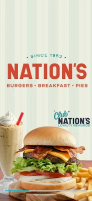 Experience the ease and convenience of ordering Nation’s giant hamburgers, great pies, and all-day breakfast on the go with just a few taps. Enjoy seamless ordering, exclusive rewards, and the ease and convenience of customizing your meal to perfection. Our app brings the best of Nation’s right to your fingertips, including special offers and loyalty rewards exclusively for app users. Join us in celebrating deliciousness since 1952, now made even easier with our mobile ordering system.n