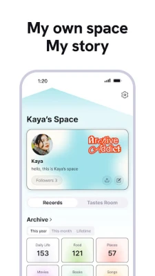 Capture everything "daily life, movies, books, food" and share it with friends in your own space.