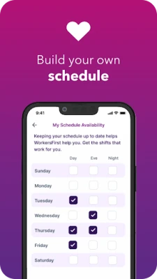 See real-time schedule updates, check-in/check-out, track your payments and benefits, and more, all from the WorkersFirst app.